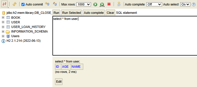 - H2 DB를 in-Memory로 설정했기 때문에 서버가 시작될 때마다 테이블을 제거하고 만들어주는것이 좋다.