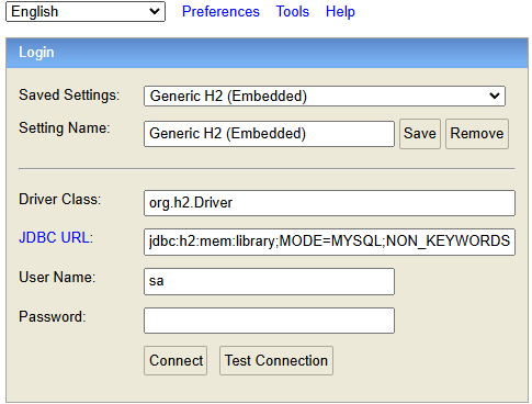 url: "jdbc:h2:mem:library;MODE=MYSQL;NON_KEYWORDS=USER"